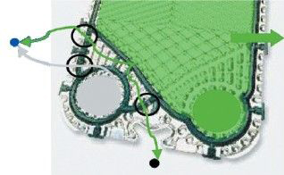 雷曼可拆式板式換熱器采用了精確的多點(diǎn)定位系統(tǒng)。角孔直徑100mm以下型號(hào)的四角定位系統(tǒng),讓板片以上下導(dǎo)桿為軸心精確嵌合在一起。角孔直徑150mm以上型號(hào)的五點(diǎn)定位系統(tǒng),讓板片的定位是以多個(gè)金屬與金屬接觸點(diǎn)而確定,其中上導(dǎo)桿的接觸點(diǎn),可以防止板片上下移動(dòng),下導(dǎo)桿的接觸點(diǎn)可限制板片不會(huì)左右移動(dòng)。采用多點(diǎn)定位技術(shù),讓板片組既可以在導(dǎo)桿上沒有阻力的前后移動(dòng),輕松簡(jiǎn)單的完成維護(hù)作業(yè),又可以在復(fù)裝時(shí)讓板片精確嵌合,讓墊片密封準(zhǔn)確,絲毫不差,板片組達(dá)到完全復(fù)位,從而保證了換熱器拆裝后壽命也耐久。而且具有多點(diǎn)定位系統(tǒng)的板式換熱器只需要一個(gè)人,即使沒有任何經(jīng)驗(yàn),用簡(jiǎn)單的工具就可輕易的拆裝換熱器。 |